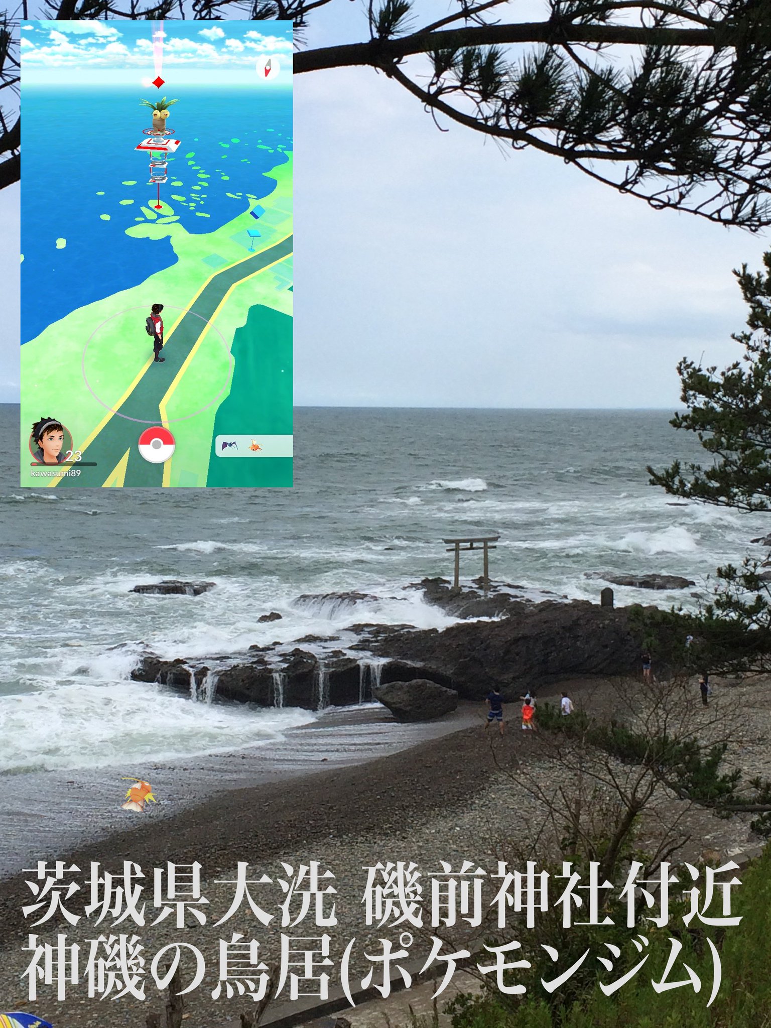 A través del usuario @nao_halfway, estaba jugando en la ciudad de Oraimachi, cuando para su sorpresa se dio cuenta de que un santuario sintoísta, ubicado en medio del mar, era un gimnasio de Pokemon Go.